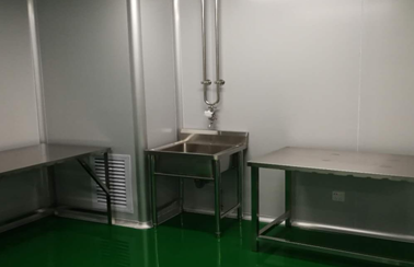 由于所處位置對(duì)高精度恒溫恒濕工程要求不利,故在布置上設(shè)備套間方式,主室的周?chē)鸀樘组g(緩沖空間)兼作空調(diào)機(jī)房,并保持(23土2) C的空調(diào)要求。此外,為了防止進(jìn)出時(shí)門(mén)的開(kāi)閉對(duì)主室的干擾,進(jìn)主室先通過(guò)前室。前室要求達(dá)到溫度(23土1)℃,相對(duì)濕度50%士5%的水平。